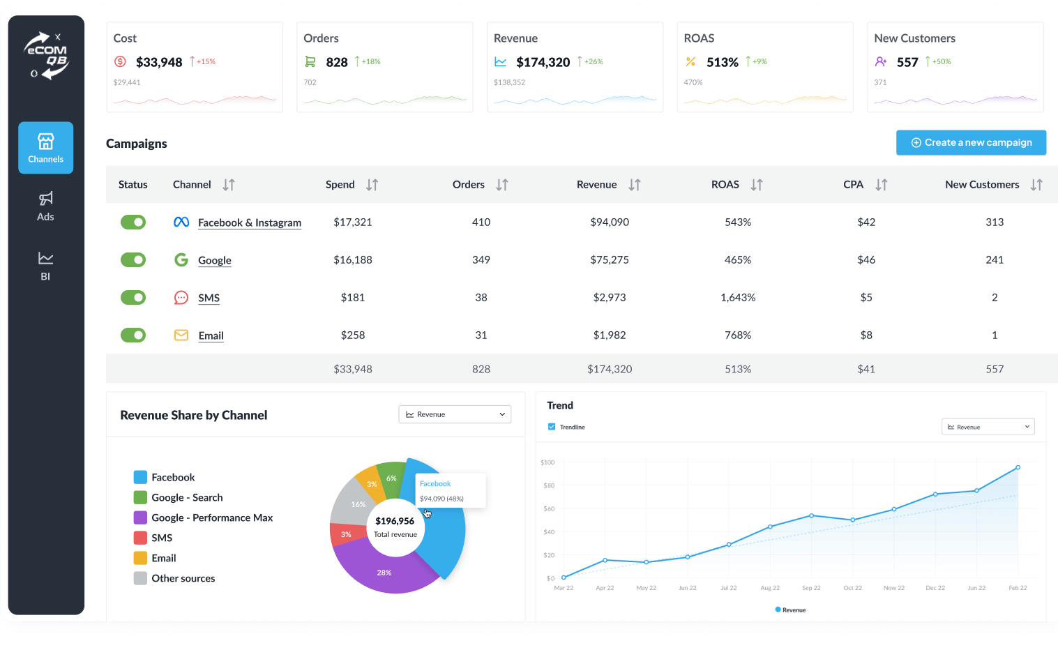 Our KPI Calculator Agent transforms your costs, revenue, and ad data into instant insights like CPA, ROAS, and RPV — giving you clarity on break-even points and profit targets in seconds.